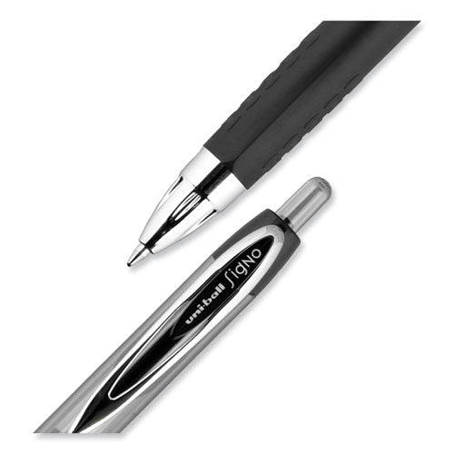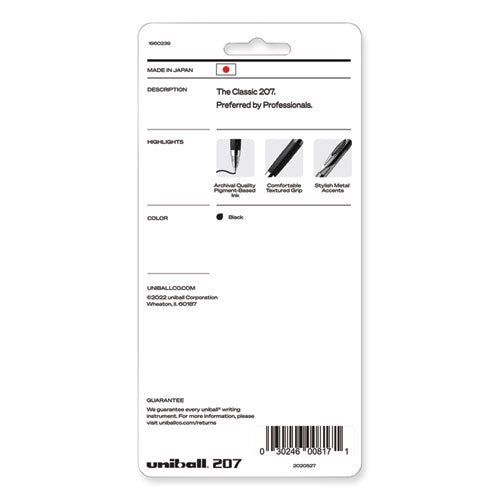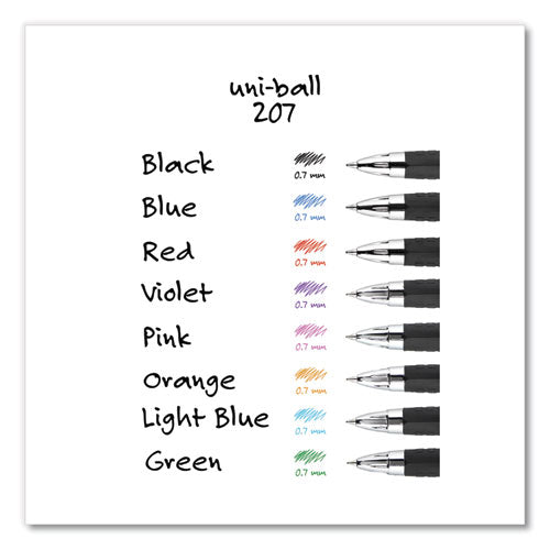 Stock your office, home or classroom with 207 Retractable Gel Pens from uni-ball available in various point sizes with a stainless steel tip that resists bending and breaking. Even-flowing, pigment-based gel ink delivers a smooth writing experience for intense, vibrant lines, ensuring that every mark is brilliantly communicated. Use these retractable gel pens for everyday writing tasks, check signing and all of your important signatures, trusting its quick-drying uni Super Ink. Innovative uni Super Ink technology effectively entraps the gel ink into the paper, producing fraud, fade and water-resistant documents that resist check washing or bleaching. A textured grip offers greater comfort and control as you continue writing, while a translucent ink window indicates the level of gel ink remaining, so you don't run out unexpectedly. The sleek design of the 207 with modern metal accents gives the retractable gel pen a stylish touch.