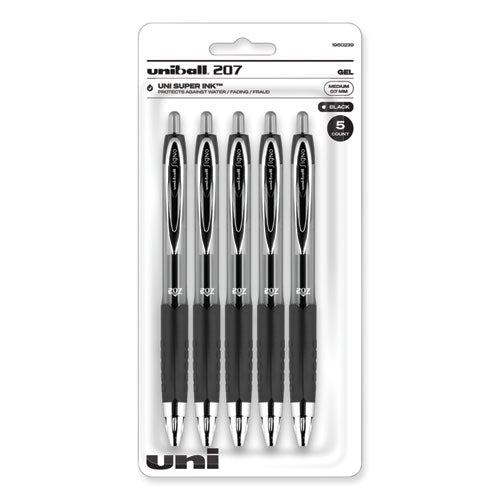 Signo 207 Gel Pen, Retractable, Medium 0.7 Mm, Black Ink, Clear/black Barrel, 5/pack