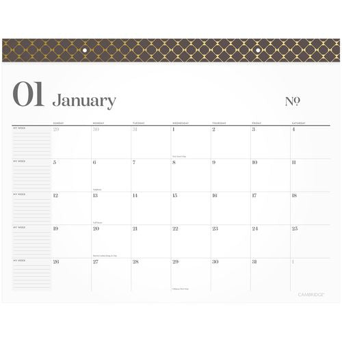 Workstyle Monthly Desk Pad Calendar, 21.75 X 17, White Sheets, Brown/gold Headband, Clear Corners, 12-month (jan-dec): 2025