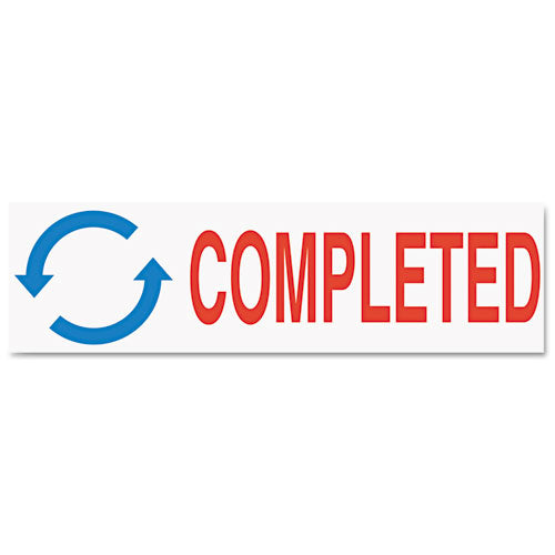 Unique dust cover automatically opens and closes while stamping. Ergonomic rubber grip. Up to 50,000 impressions. Microban® protection inhibits the growth of stain- and odor-causing bacteria on the product. Stamp Type: Message; Message(s): COMPLETED; Ink Types: Pre-Inked; Re-Inkable; Impression Width: 1.63".