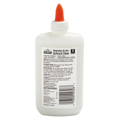 Attach items to paper, wood, cloth, pottery, and more with the non-toxic adhesive of Elmer's Washable School Glue. Specially formulated to be washable and easy to use, Elmer's School Glue perfect for school projects and home arts and crafts. Elmer’s School Glue is adjustable before setting and does not run, delivering reliable results with every use. You can also use your liquid glue to create glue slime! Adhesive Type: Liquid; Packing Type: Bottle; Washable: Yes; Color on Application: White.