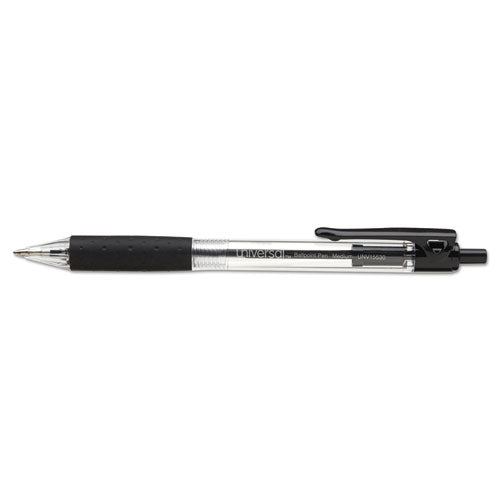 Comfort Grip Retractable Ballpoint Pen, 1mm, Black Ink, Clear Barrel, Dozen