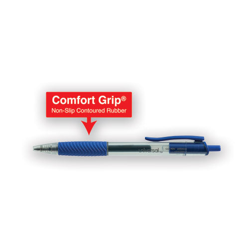 Let your ideas flow freely. Super-smooth gel ink allows the pen to glide across the page, making a bold impression every inch of the way. Contoured, soft-rubber grip helps improve control while reducing writing tension. Attractive, two-toned barrels match the ink color, so you always know which pen to grab. Quick-drying, water-resistant formula minimizes the potential for smudges and smears. Pen Sub-Brand & SKU Line: Comfort Grip®; Pen Style: Retractable; Pen Type: Gel Pen; Refillable (Yes/No): No.