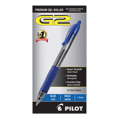 G2 Premium Retractable Gel Pen, 1 Mm, Blue Ink, Smoke Barrel, Dozen