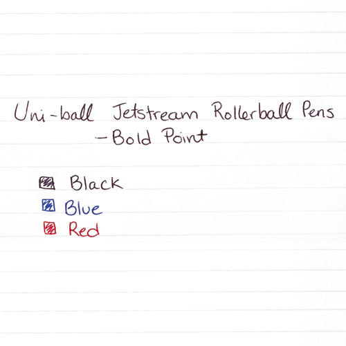 Contemporary styling coupled with an innovative ink system for high-speed writing and performance. uni Super Ink™ provides three-way protection against water, fading and fraud. The smooth writing action of a gel meets the quick-drying properties of a ballpoint without smearing. Embossed comfort grip provides maximum control. Windowed barrel for monitoring ink supply. Pen Sub-Brand & SKU Line: Jetstream™; Pen Style: Stick; Pen Type: Ballpoint Pen; Refillable (Yes/No): Yes.