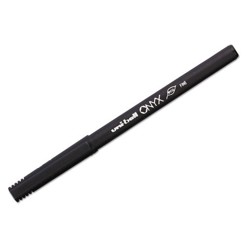 The uni-ball ONYX Rollerball Pen is built to be a great pen at a great price. Designed with a strong metal point to produce smooth, consistent writing, and finished off with a durable plastic clip, this roller pen will perform for years. The uni-ball ONYX pen also features uni super ink which protects against water, fading and fraud. Featuring an economical design, these uni-ball pens are ideal for the office. Pen Sub-Brand & SKU Line: ONYX®; Pen Style: Stick; Pen Type: Roller Ball Pen; Refillable (Yes/No): No.