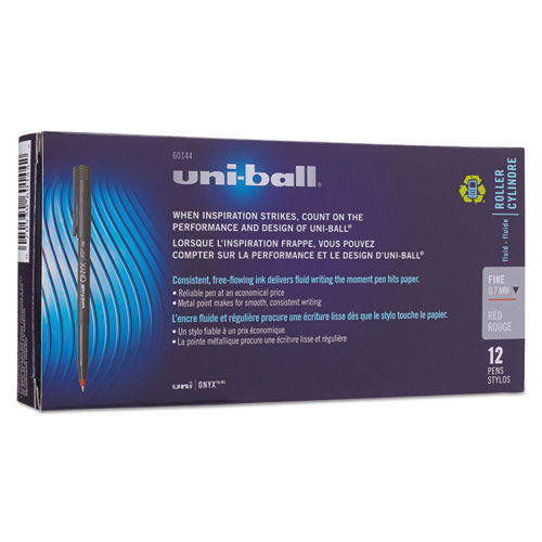 Onyx Stick Roller Ball Pen, Fine 0.7mm, Red Ink, Black Matte Barrel, Dozen