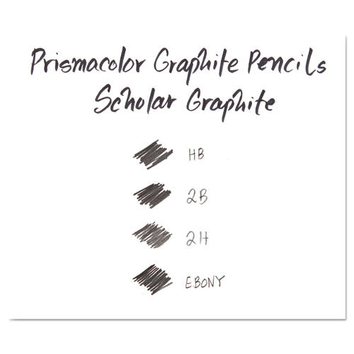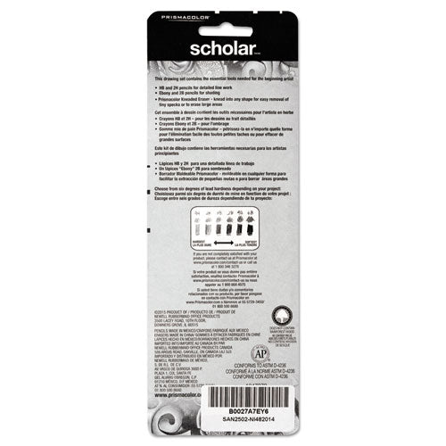Draw dark shadows, delicate highlights and sultry mid-tones with Prismacolor® Scholar™ Graphite Drawing Pencils. Handy art kit features four different pencils with varying lead hardness ratings to give everyone from the beginning art student to the experienced crafter the tools they need to develop as artists. With the Scholar™ Set, you’ll have the art pencils you need to accomplish detailed line work, shading and large-area coverage. Five-piece set includes: HB, 2H, 2B and 4B graphite pencils along with a kneaded rubber eraser. Retractable (Yes/No): No; Eraser (Yes/No): Yes; Graphite Color(s): Black; Color Family: Black.