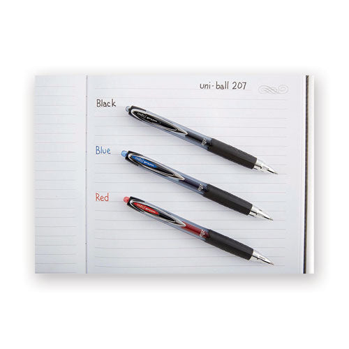 Create text that’s clear and bold with uni-ball® Signo 207™ Retractable Gel Pens. Super Ink™ features three-way protection against water, fading and fraud, and it's also vividly pigmented and fade-resistant, making these gel pens perfect for archival-quality projects. Each pen features sleek, metallic accents for an elegant appearance and a visible ink supply, ensuring that you'll never unexpectedly run dry. Pen Sub-Brand & SKU Line: Signo 207™; Pen Style: Retractable; Pen Type: Gel Pen; Refillable (Yes/No): Yes.
