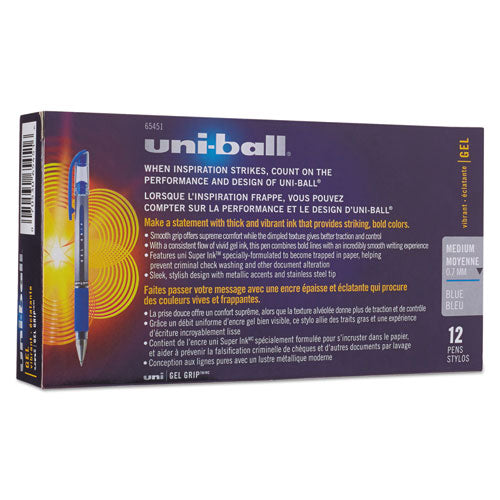Signo Grip Stick Gel Pen, Medium 0.7mm, Blue Ink, Silver-blue Barrel, Dozen