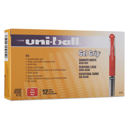 Signo Grip Stick Gel Pen, Medium 0.7mm, Red Ink, Silver-red Barrel, Dozen