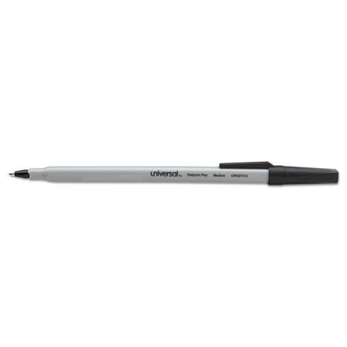 Stick Ballpoint Pen, Medium 1mm, Black Ink, Gray Barrel, Dozen