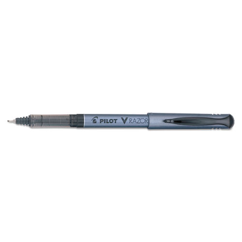 V Razor Point Liquid Ink Stick Marker Pen, 0.5mm, Black Ink, Gray Barrel, Dozen