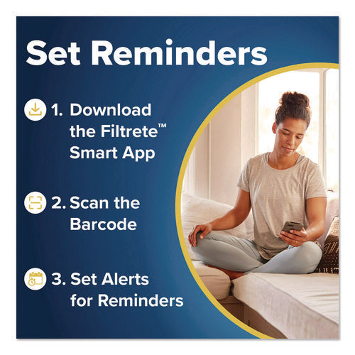 This no-nonsense filter helps capture varying sizes of particles, from the large (lint, pollen, dust and pet dander) to the microscopic (smoke and smog). Opt for a Filtrete™ Allergen Defense Air Filter to transform your central heating and cooling system into a whole-home air filtration operation. Designed with exclusive Filtrete™ Brand 3-in-1 technology from 3M to trap unwanted air particles while letting cleaner air flow through. Create a change countdown in the Filtrete™ Smart app. Simply use the app to scan the barcode on your filter's packaging, then choose 30, 60 or 90 days for your replacement countdown. When the lifespan is up, you'll get a notification to change your filter.