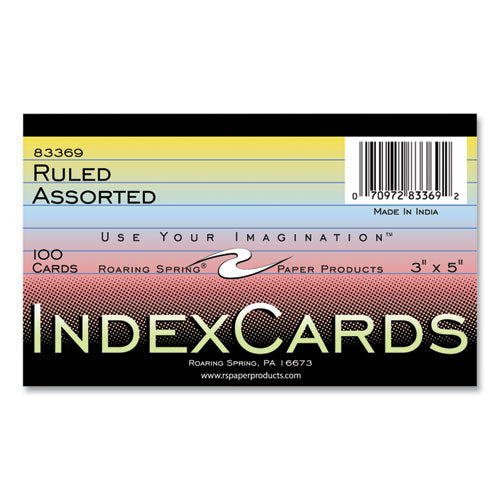 Colored Index Cards, 3 X 5, Assorted Colors, 100/pack, 36 Packs/carton, Ships In 4-6 Business Days