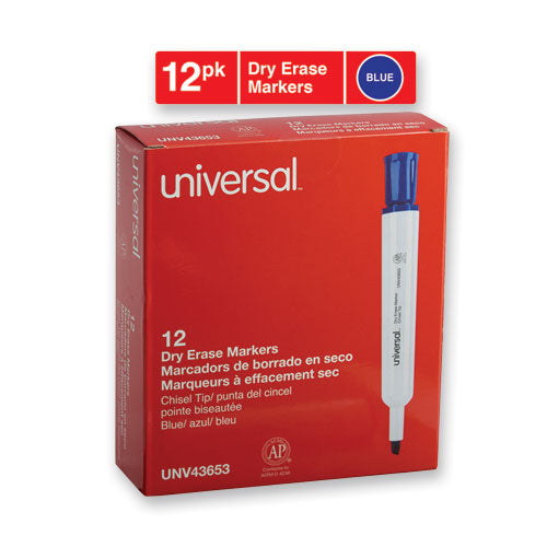 Dry Erase Marker, Broad Chisel Tip, Blue, Dozen