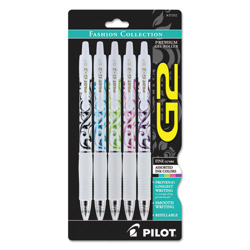 G2 Fashion Premium Gel Pen, Retractable, Fine 0.7 Mm, Five Assorted Ink And Barrel Colors, 5-pack
