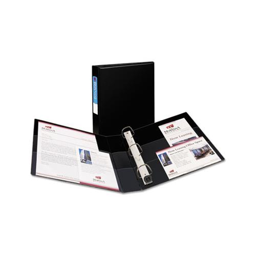 Heavy-duty binders for extended use. Tear-resistant DuraHinge® design is stronger and lasts longer. DuraEdge feature makes the sides and top more pliable, providing greater split resistance. Deep texture film offers a smoother finish and features a linen pattern for a high-quality look and feel. Four clear, interior pockets provide extra storage space. Wider front and back panels fully cover standard dividers and sheet protectors. One Touch slant rings open with ease, keep pages secure and have a higher page capacity compared to the same size round rings. Pages lie flat with back-mounted rings for a clean spine. Binders are made out of heavy-duty, non-stick poly material and won’t lift ink or toner off printed pages. Binder Type: Ring; Binder Style: Non-View; Binder Size Capacity: 1.5"; Binder Sheet Capacity: 400.