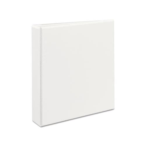 Heavy-Duty view binder with one touch EZD® rings is perfect for long-term, regular use. Tear-resistant DuraHinge® design is stronger and lasts longer. DuraEdge® feature makes the sides and top more pliable, providing greater split resistance. Deep-textured film offers a smoother finish and features a linen pattern for a high-quality look and feel. Clear cover and spine for easy customization. Four clear, interior pockets provide extra storage space. Wider front and back panels fully cover standard dividers and sheet protectors. One touch EZD® rings provide easy access and have a higher page capacity when compared to the same size round rings. Customize the cover with free, easy-to-use templates and designs at Avery® Design & Print online. Binder Type: Ring; Binder Style: View; Binder Size Capacity: 1.5"; Binder Sheet Capacity: 400.