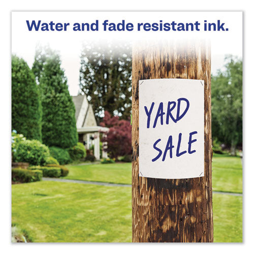 Won't dry out – leave cap off up to 1/2 hour! Bold marking, permanent ink provides high visibility. Marks on virtually any surface, including cardboard, metal, and plastic. Quick drying; water and rub resistant. Durable chisel tip marks in a variety of widths. Low odor. Safe for office, school, or home. Marker Ink Type: Permanent; Marker Tip Type: Chisel; Marker Tip Size (text): Broad; Marker Tip Size (numeric): 4.8 mm.