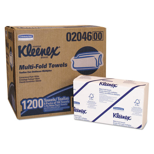 Image is important, especially for your business. Providing top-quality Kleenex Multifold Paper Towels in your office washroom and kitchen lets your employees and guests know that you care enough to offer the very best experience. Each paper towel is made of soft, absorbent material, so users will use fewer paper towels and waste less. Their fold is designed to dispense one-at-a-time, while bringing the next towel forward for another user. They're designed be used with universal multi-fold towel dispensers, giving you maintenance flexibility. Multi-Fold Towels, 4 Pack Bundle—9 1/5 x 9 2/5. Four inner poly bags of four packs each. 150 towels per pack. Towel/Wipe Type: Multi-Fold; Application: General Purpose; Material(s): Paper; Number of Plies: 1.
