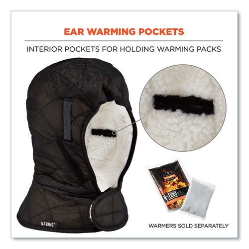 The N-Ferno 6952 Winter Hard Hat Liner features three layers of insulation, with a quilted shell, foam mid-layer and sherpa lining for enhanced warmth and comfort. This lightweight shoulder-length thermal liner is extra long to keep head, ears and neck covered while fitting comfortably under helmets or hard hats without bulk. The quick-drying polyester sherpa lining delivers all the benefits of real sheep's wool to keep wearers warm without bulk or discomfort. Also features a quilted nylon shell. There are four hook and loop straps on the exterior of the liner designed to securely attach to the interior of a hard hat for versatile protection in extreme work environments. This hard hat winter liner has an elastic strip in the forehead area to keep the liner snug against the face to trap body heat in and keep cold out. Small pockets by the ears are designed to hold regular-sized hand warmers (sold separately) to keep ears warm and comfortable in extreme temperatures.