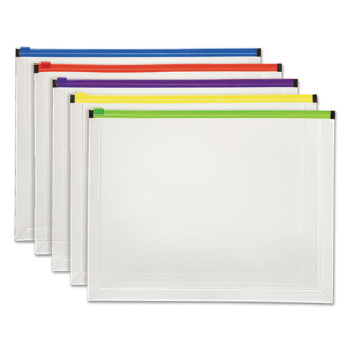 Poly Zip Envelope, Zipper Closure, Assorted, 10.13" X 5.13", 5-pack