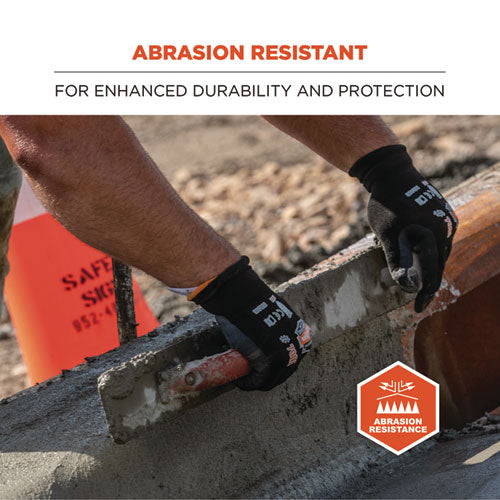 The ProFlex 7001 Nitrile Coated Gloves feature a durable DSX coating for optimal grip and dexterity in dry conditions. The 18-gauge nylon-spandex knit makes for a soft, lightweight and flexible form fit while still meeting ANSI Level 3 Abrasion Resistance for safety around rough materials. Ideal for handling small parts, the combination of DSX coating and thin form-fitting knit delivers enhanced dexterity compared to bulkier safety gloves. The snug knit cuffs are longer than most on the market, a feature that enhances fit and extends protection while keeping dirt and debris out. Coated in two-layer DSX nitrile, (D)ry (S)urface E(X)treme, these utility work gloves are designed for optimal performance when handling dry materials and surfaces. The double layers of smooth abrasion-resistant nitrile boost glove durability and feel while remaining comfortably flexible for enhanced dexterity with minimal hand fatigue.
