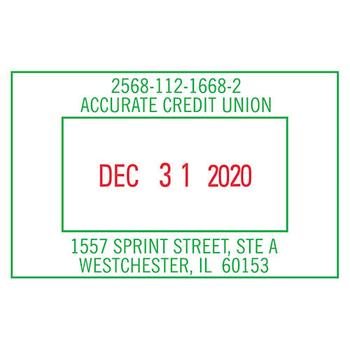 It's a date stamp and more! Versatile eight-year pre-inked dater becomes a whole new message dater when you snap on the pre-inked custom Impressions Frame™. Date is changed with a quick turn of the dial -- bands available in black, red or blue.